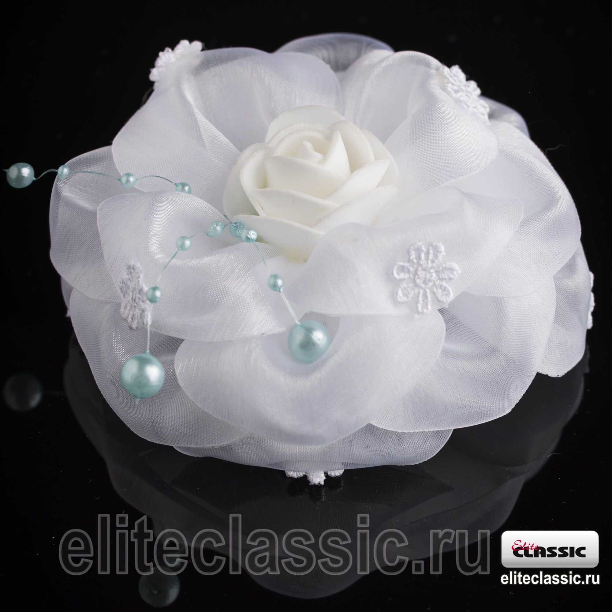 Нарядные белые бантики с декоративным жемчугом и цветочками, подойдут на любое торжество, диаметр 12 см, цена 1 шт. - 85 руб.
