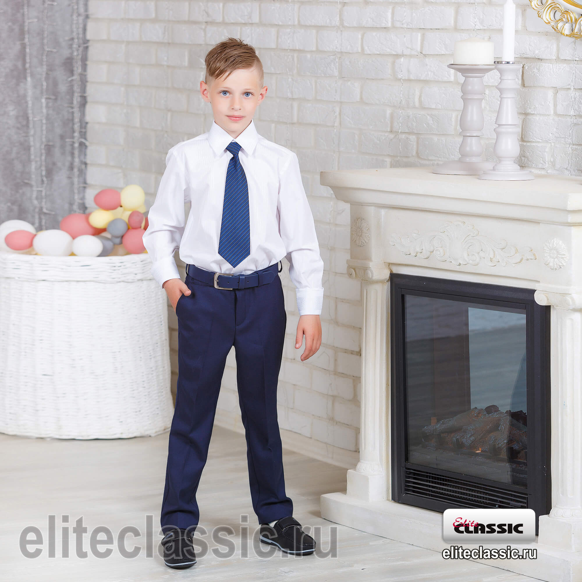 Зауженные к низу брюки на притачном поясе и чуть заниженной талией, с застёжкой молния и боковыми карманами. Модель предназначена для мальчиков младших и старших классов.