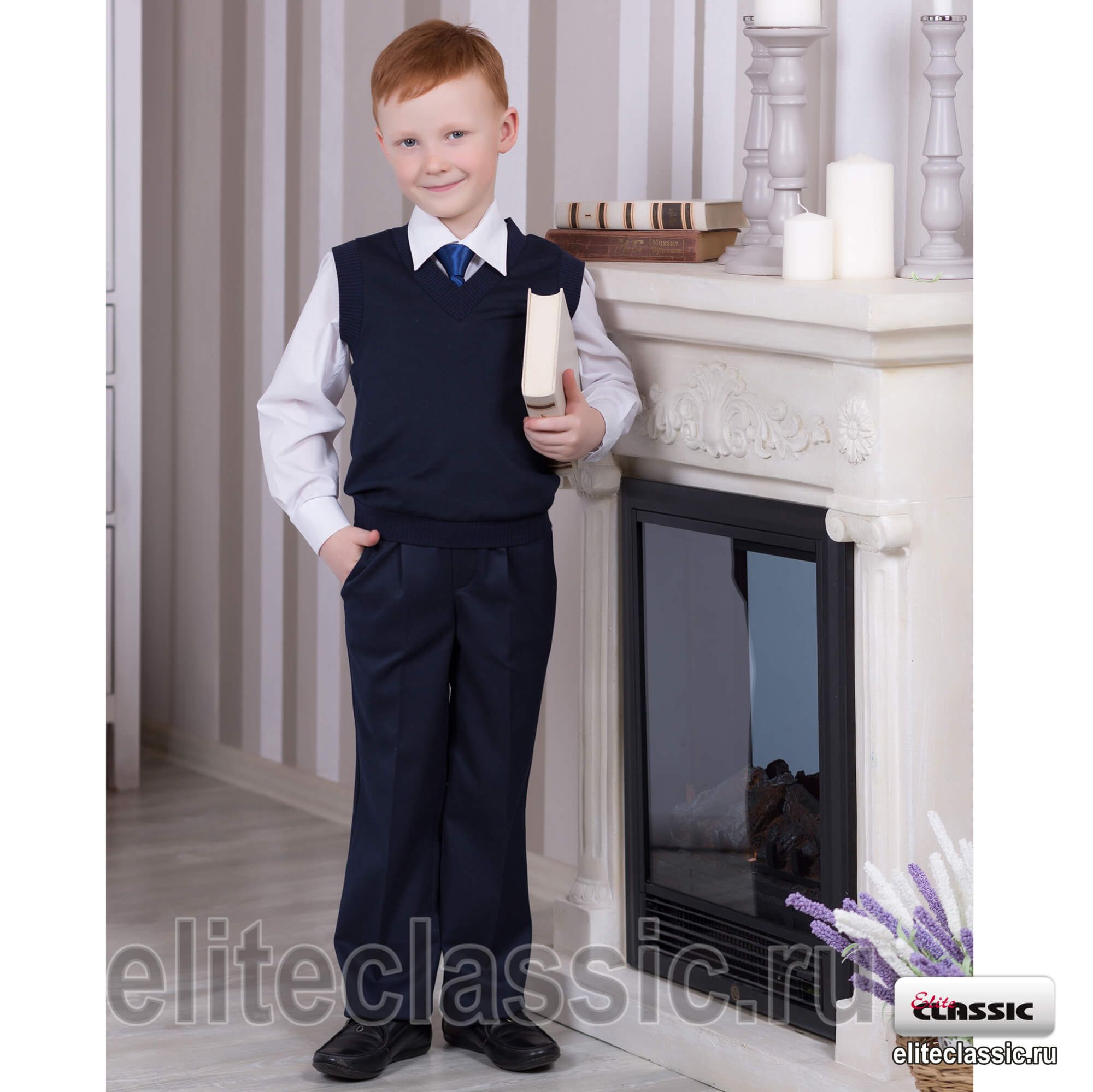 Классические брюки на притачном поясе с защипами по переду, пояс по бокам на резинках, с застёжкой молния и боковыми карманами. Модель предназначена для мальчиков младших и старших классов.
