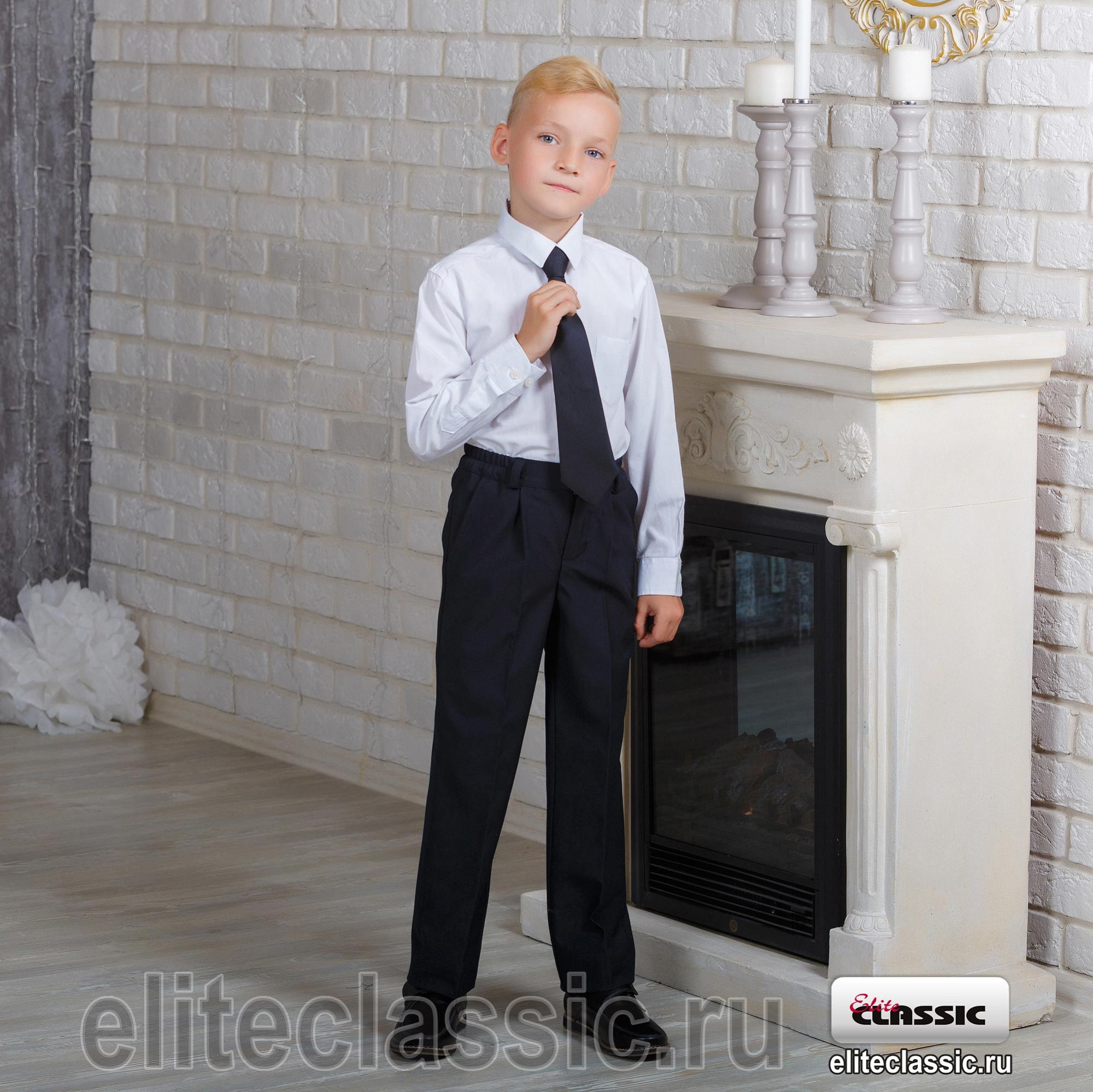 Классические брюки на притачном поясе с защипами по переду, пояс по бокам на резинках, с застёжкой молния и боковыми карманами. Модель предназначена для мальчиков младших и старших классов.