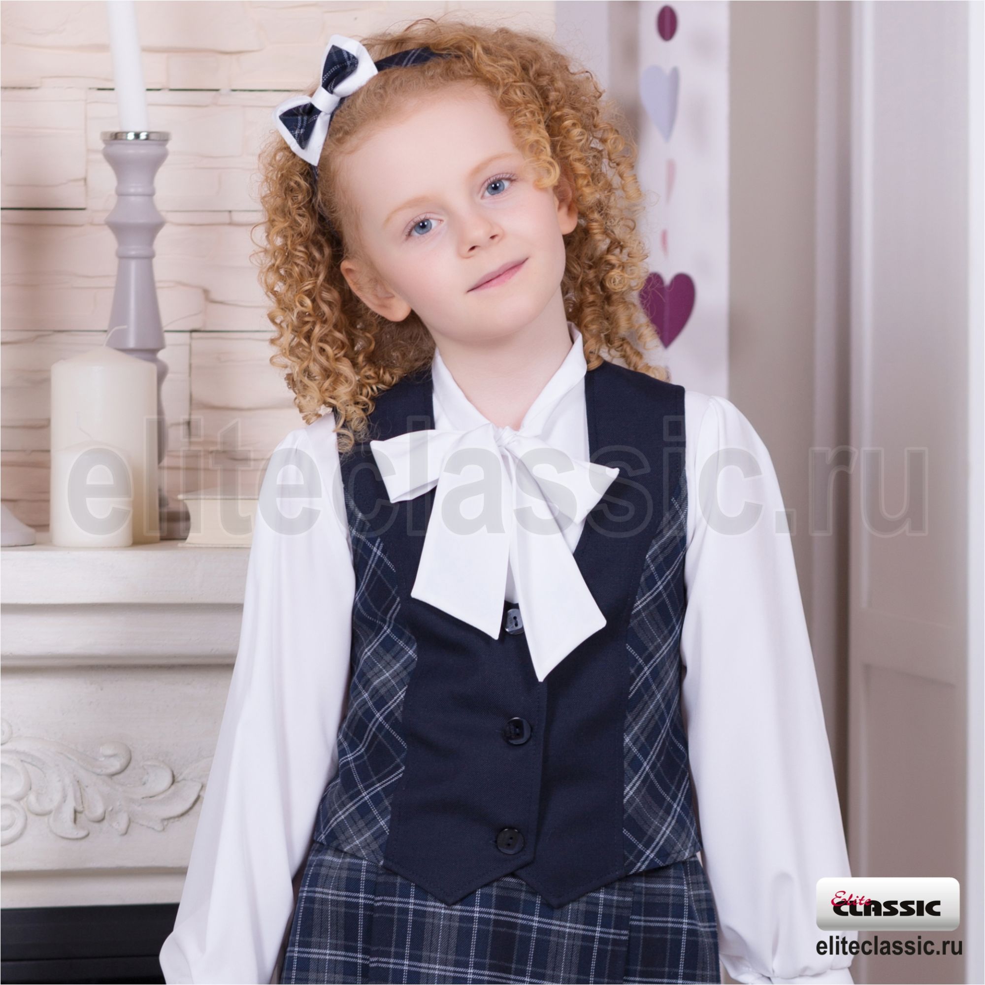 Жилет полуприлегающего силуэта для девочек младших и средних классов. Органичное сочетание клетки и глади придают модели классический англиский стиль. Жилет хорошо сочетается как с юбкой "Каролина", так и с одноцветной юбкой.