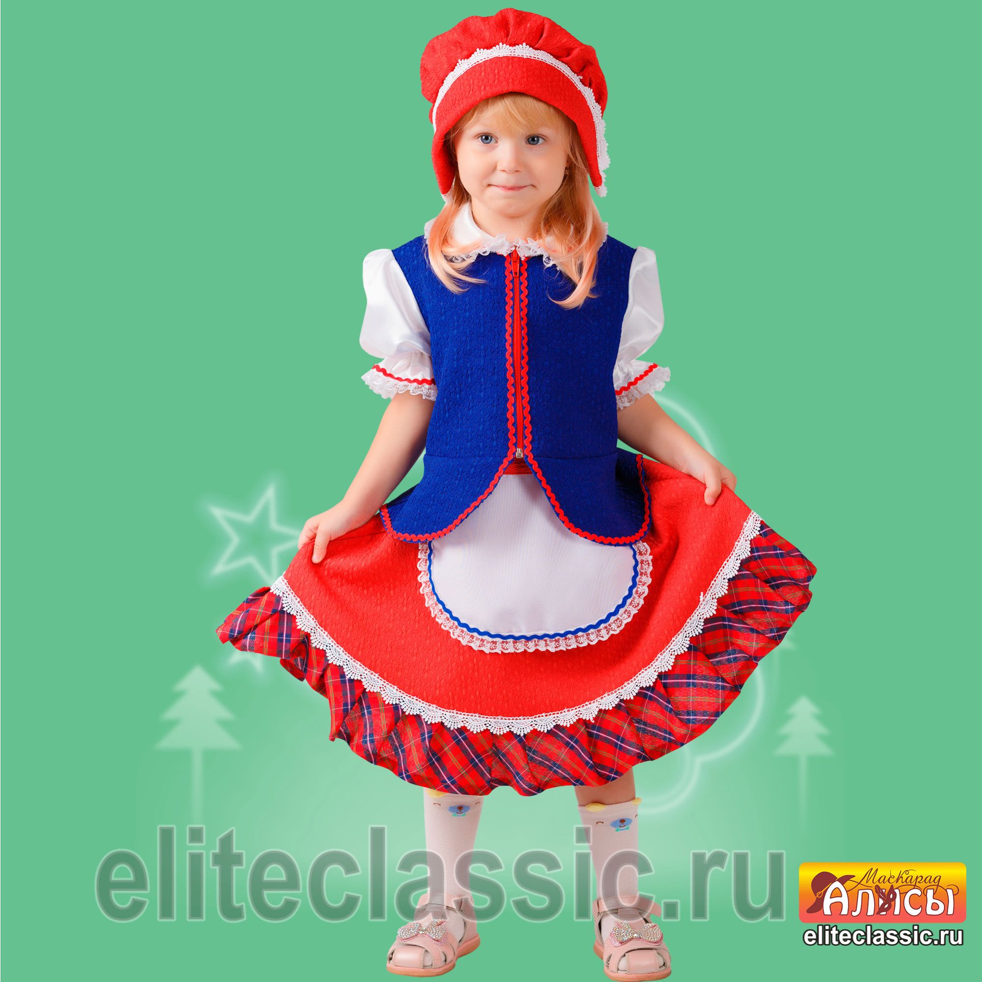 Карнавальный костюм "Красная Шапочка "Яна", как будто сошла со страниц сказки, подойдет для театральных постановок, детских утренников и Новогоднего праздника.