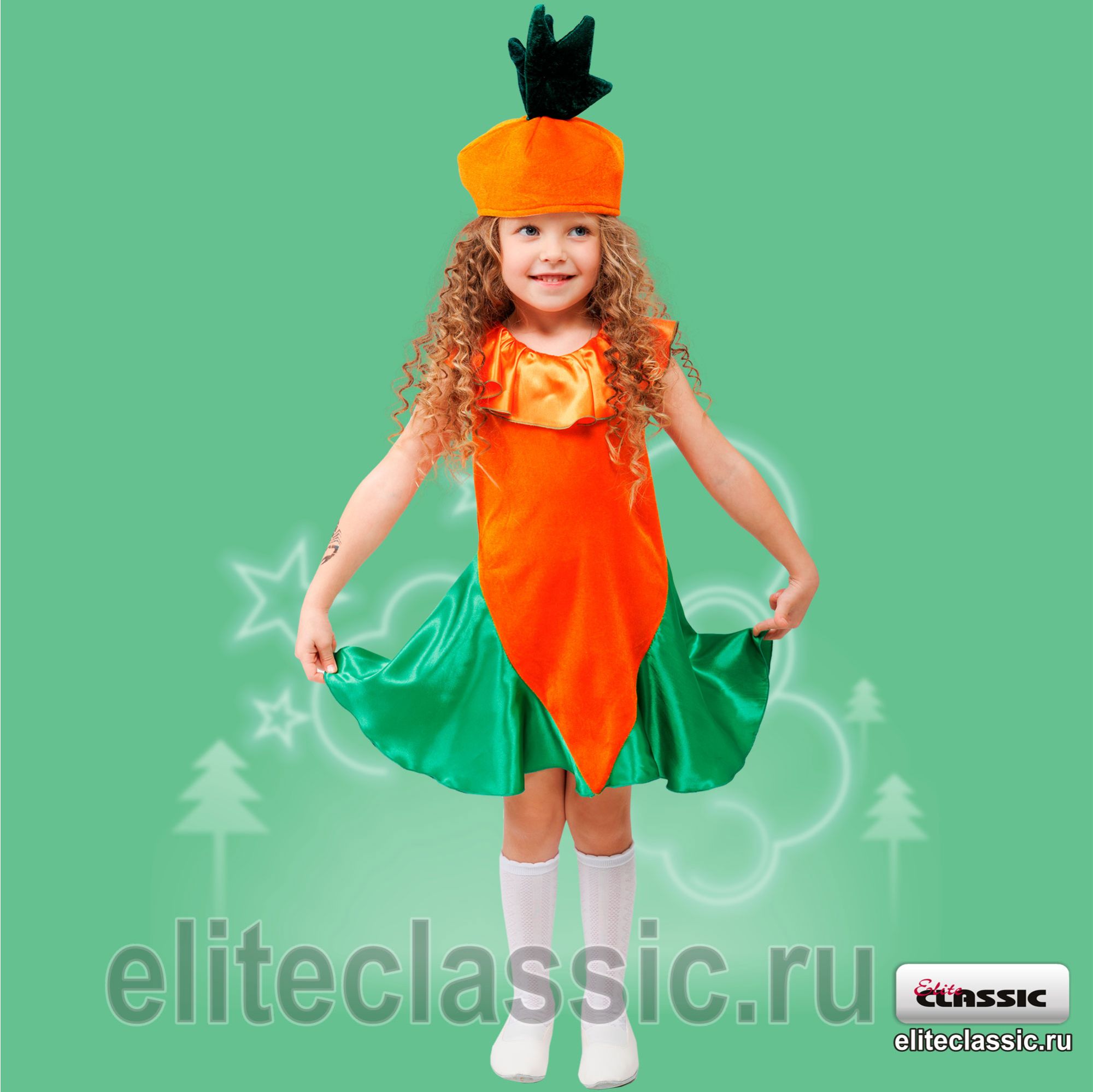 платье и шапочка в виде морковки.