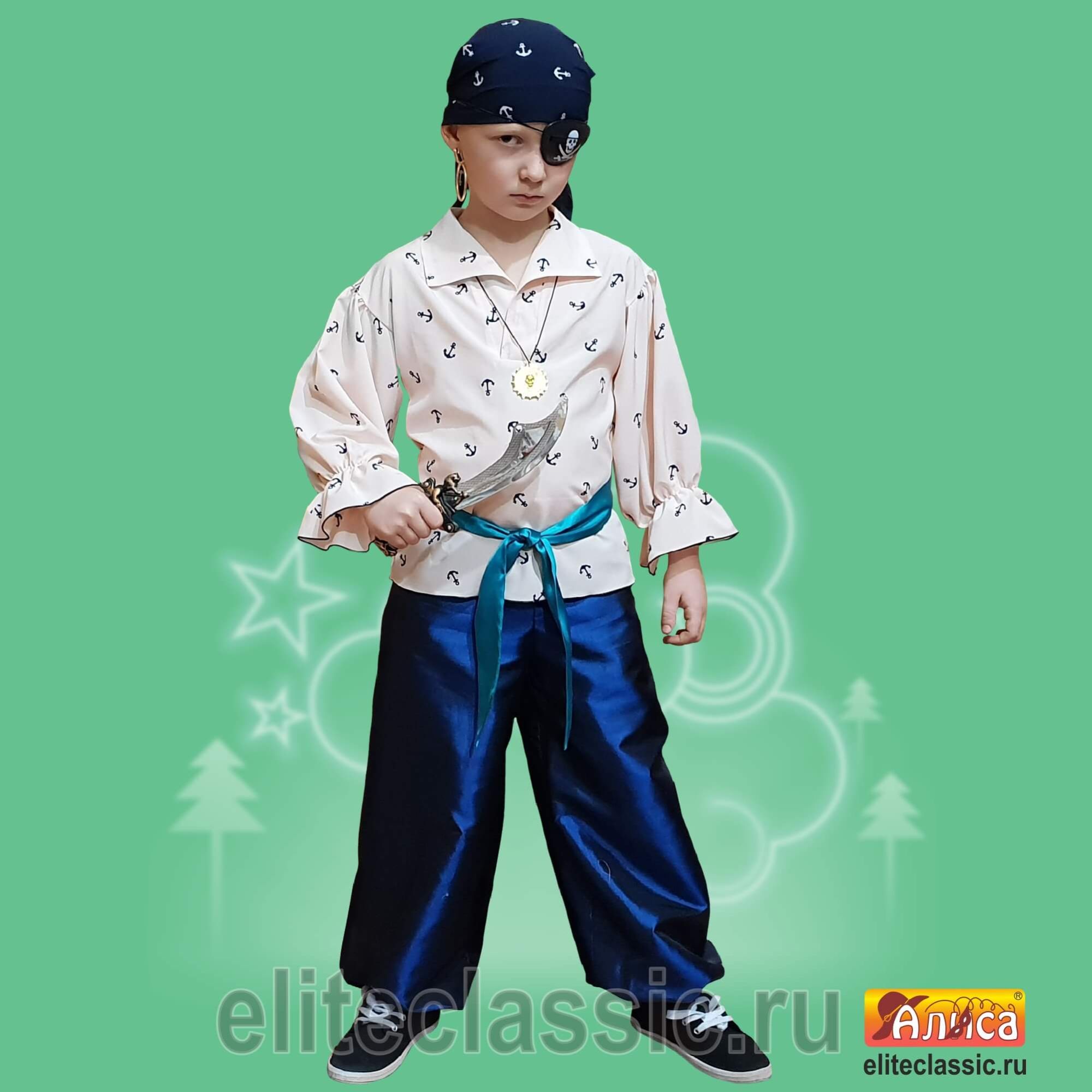 косынка, наглазник, серьга, сорочка, пояс, брюки, кинжал.
