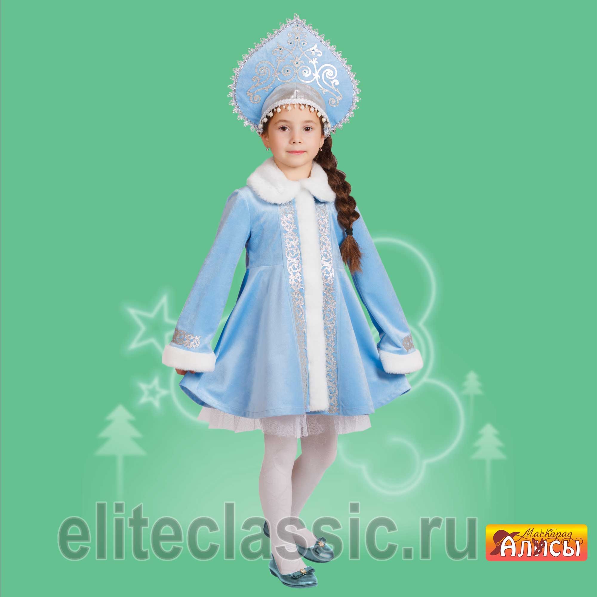 Маскарадный, сценический костюм "Снегурочка "Вьюжная" подойдет для театральных и тематических постановок, Новогодних праздников. Шубка свободного покроя имеет декоративные нашивки, рукав длинный, по краю изделия и низу рукавов пришит мех, шубка расшита кружевом. Кокошник выполнен из того же материала что и само изделие, также имеет декоративную нашивку и кружево. Держится кокошник на голове за счёт резинки.