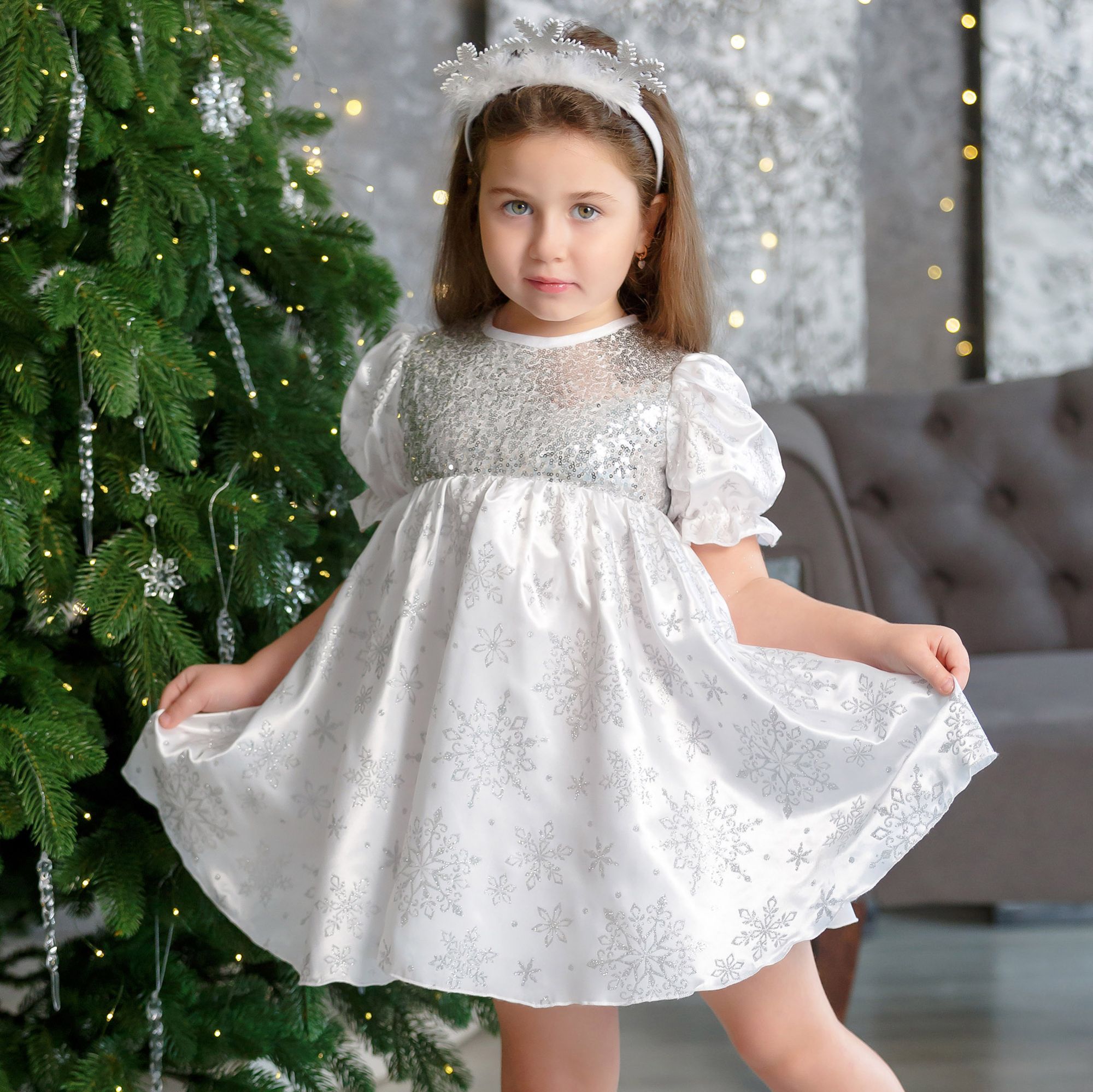 Карнавальное изделие детское "Снежинка "Серебристая"". Наряд подойдет для празднования Нового года, театральных постановок и костюмированных праздников.