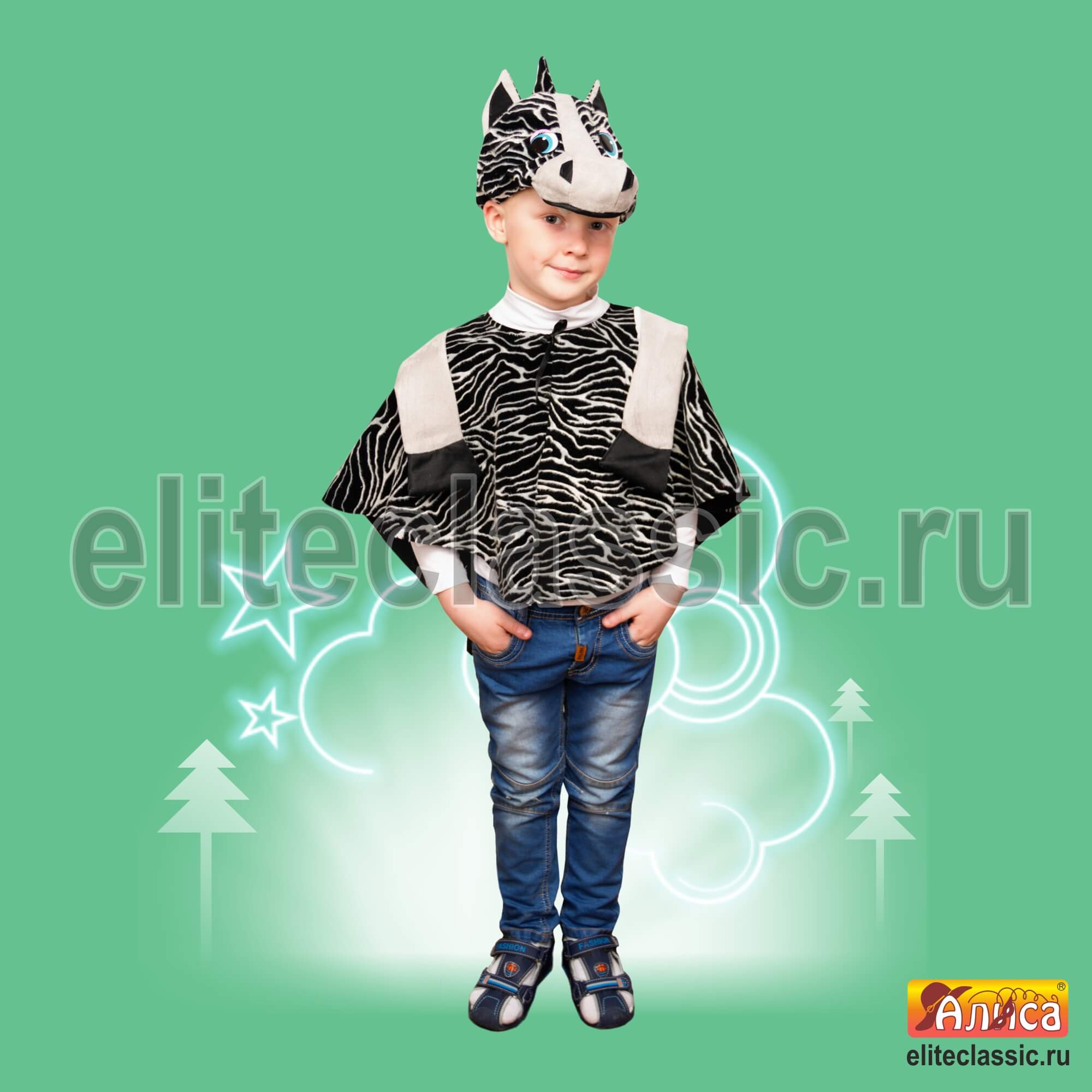пончо и маски в виде морды зебры.