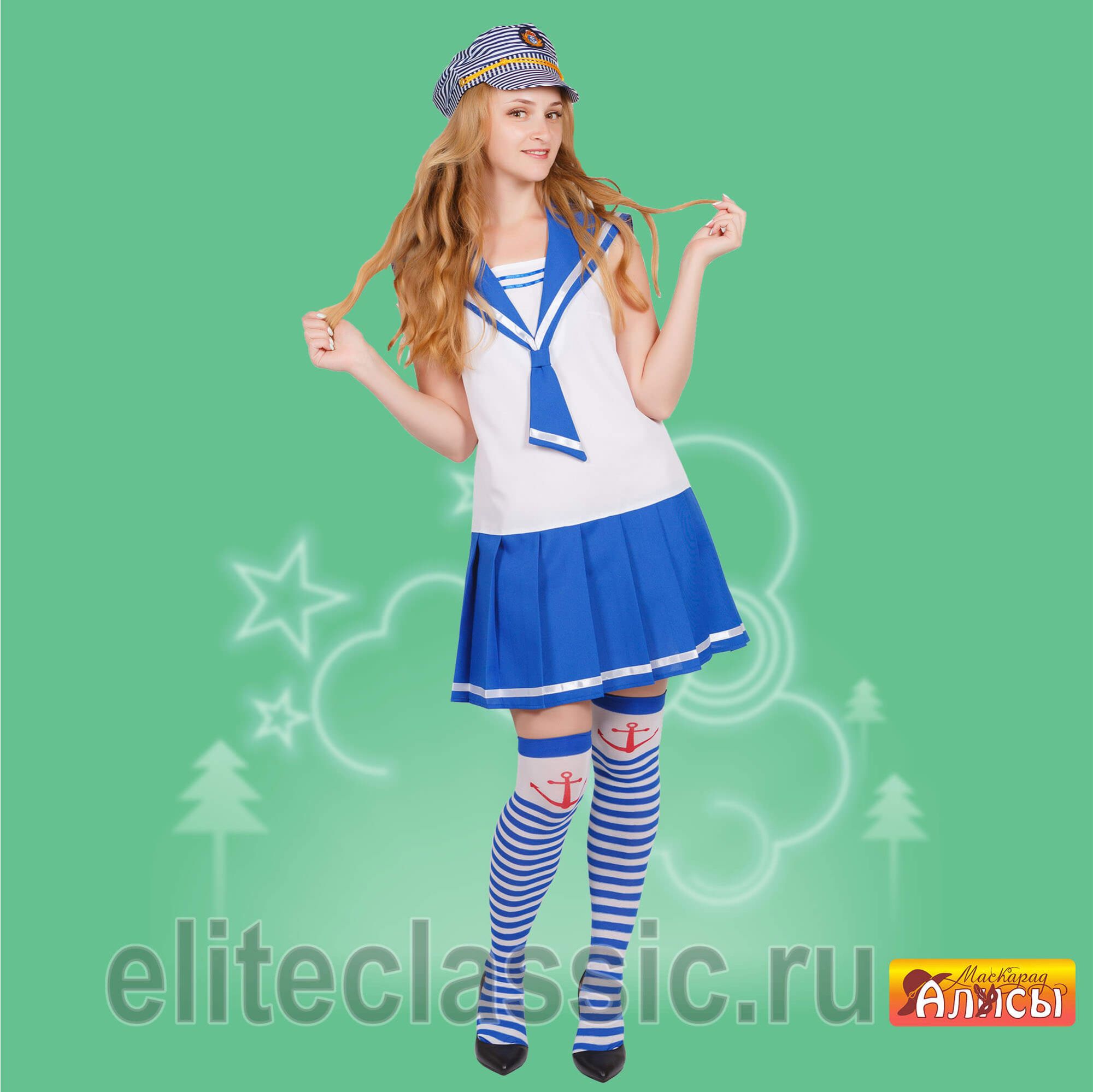Костюм весёлой морячки прекрасно подойдёт для военно-патриотических праздников, 23-го февраля, 9-го мая, сценических и театральных постановок.