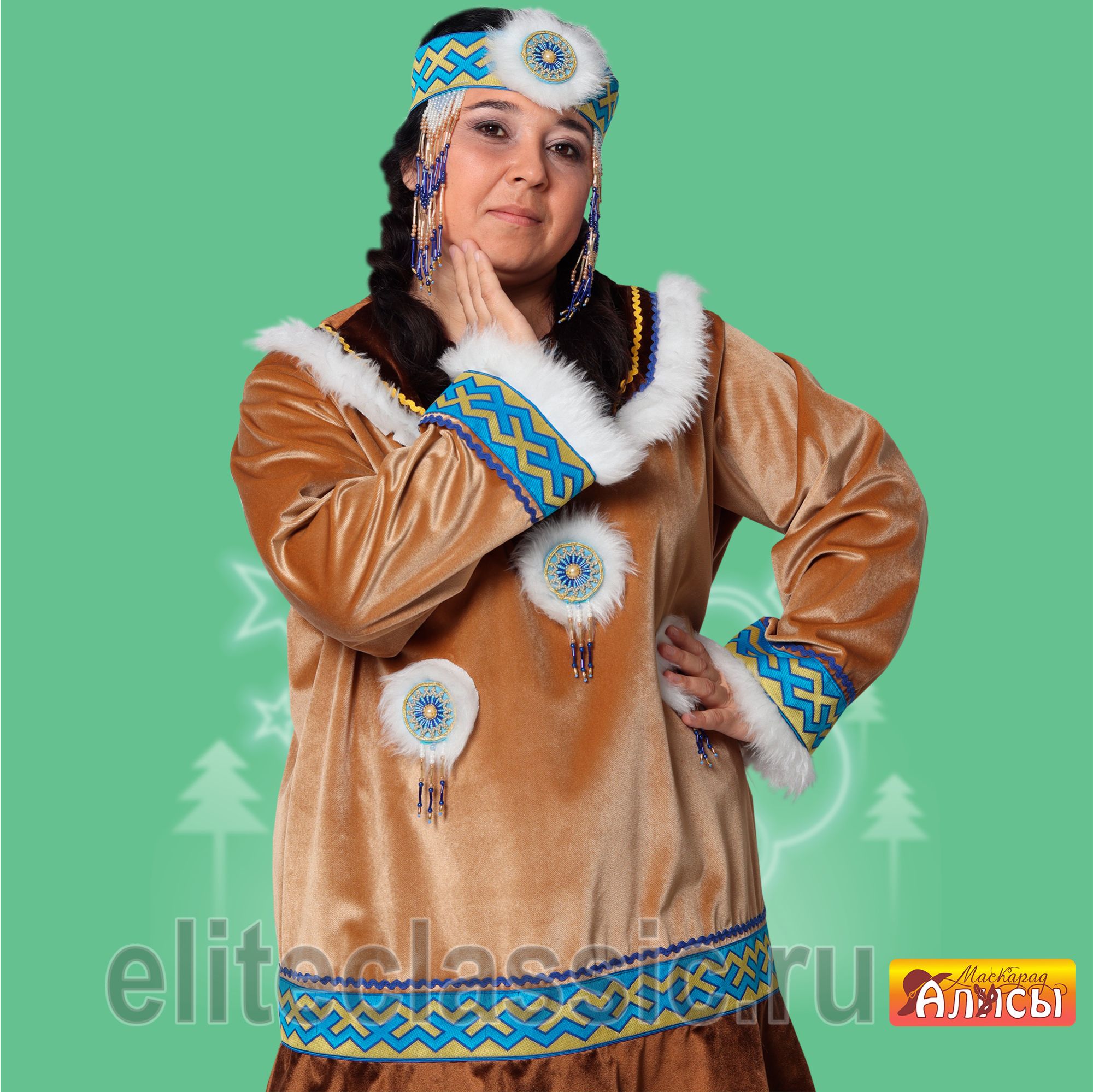 Карнавальный костюм "Чукча жен." в национальном стиле помогает легко воплотится в образ. Отлично подходит для тематических и театральных постановок, праздников и Нового года. Посмотреть видео.