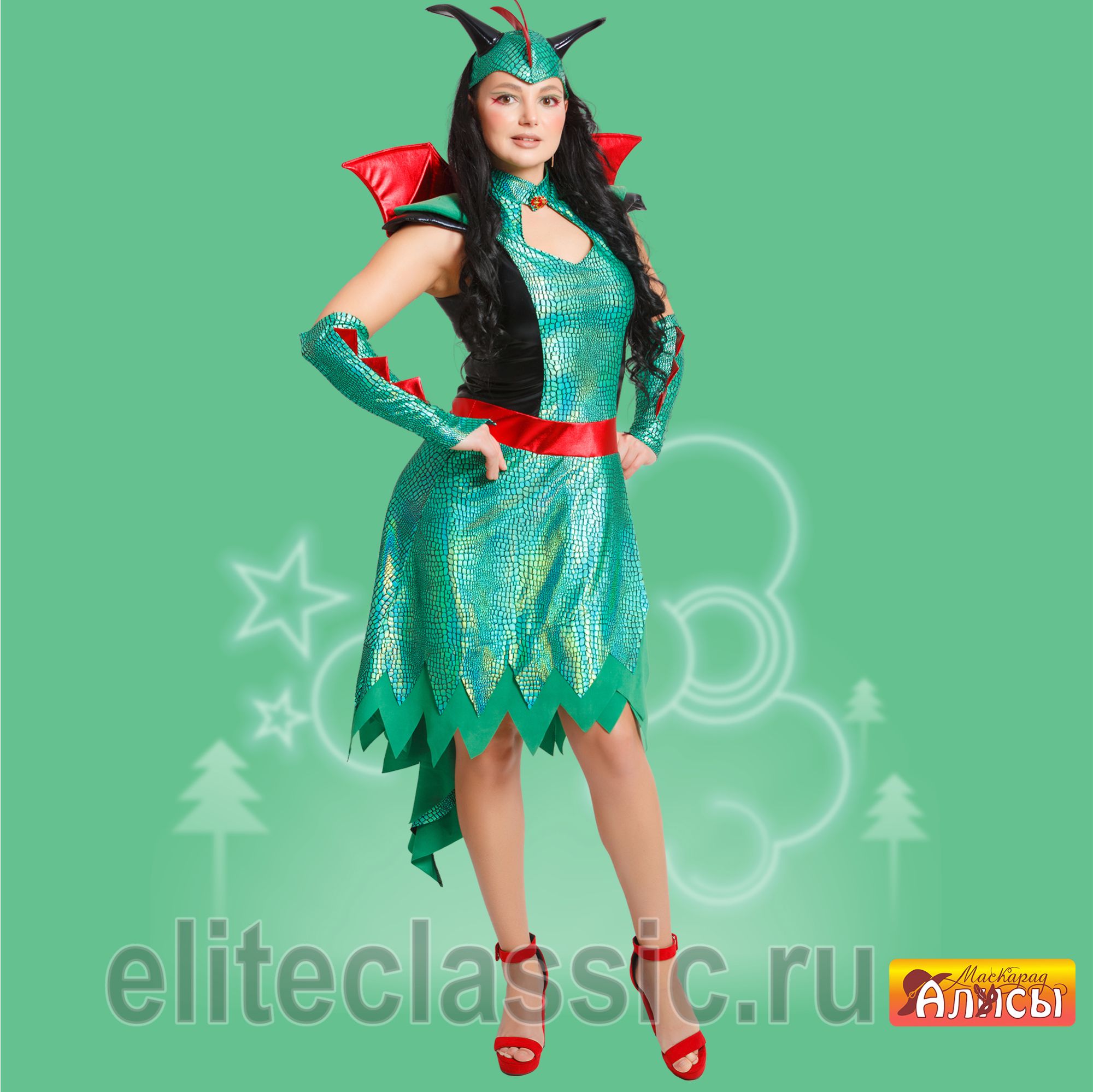 Маскарадный костюм "Драконша" для взрослых, выполнен в праздничном стиле. Подходит для любого костюмированного праздника в детском саду, школе, на Новый год, театральных постановок и других мероприятий.