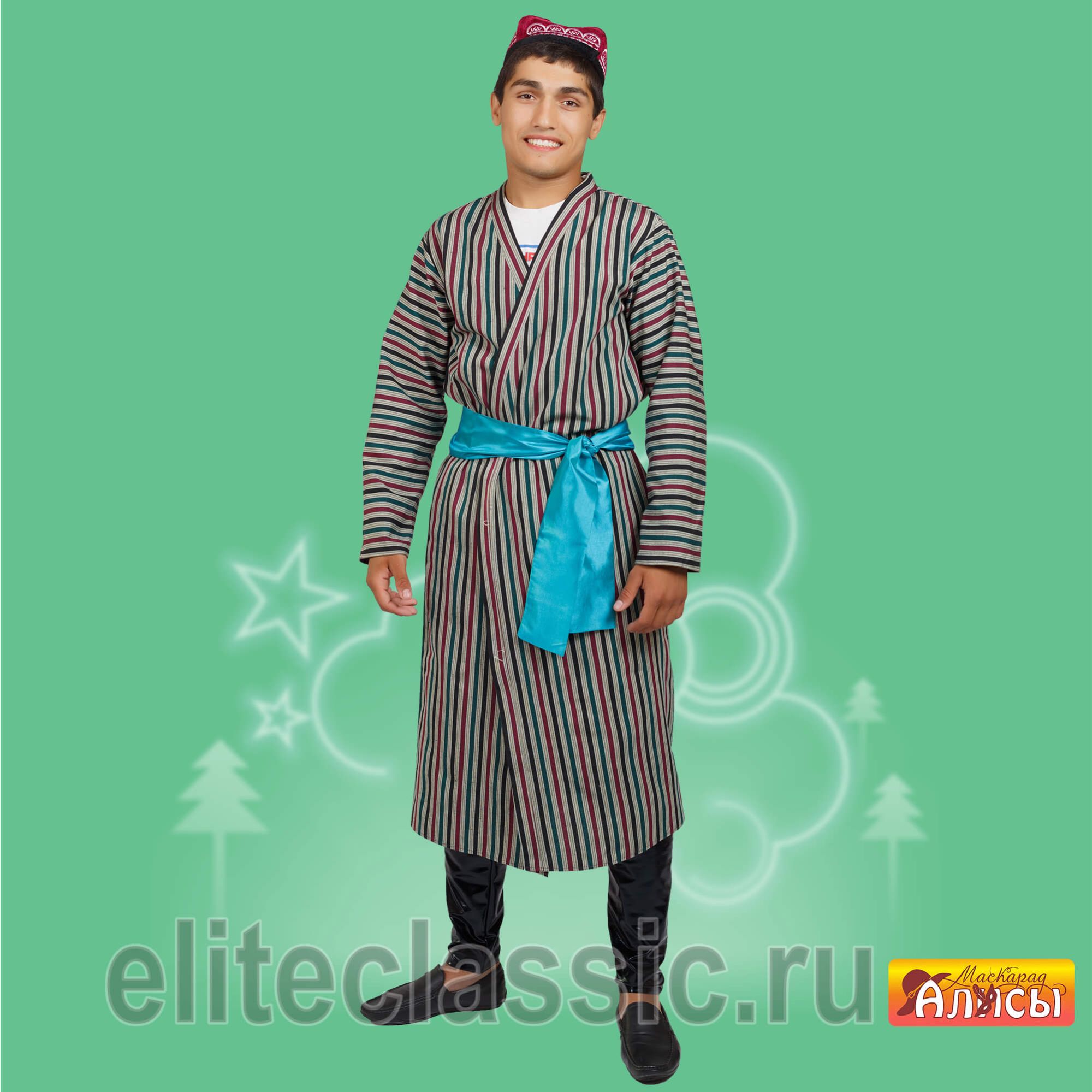 тюбетейка, халат, пояс.