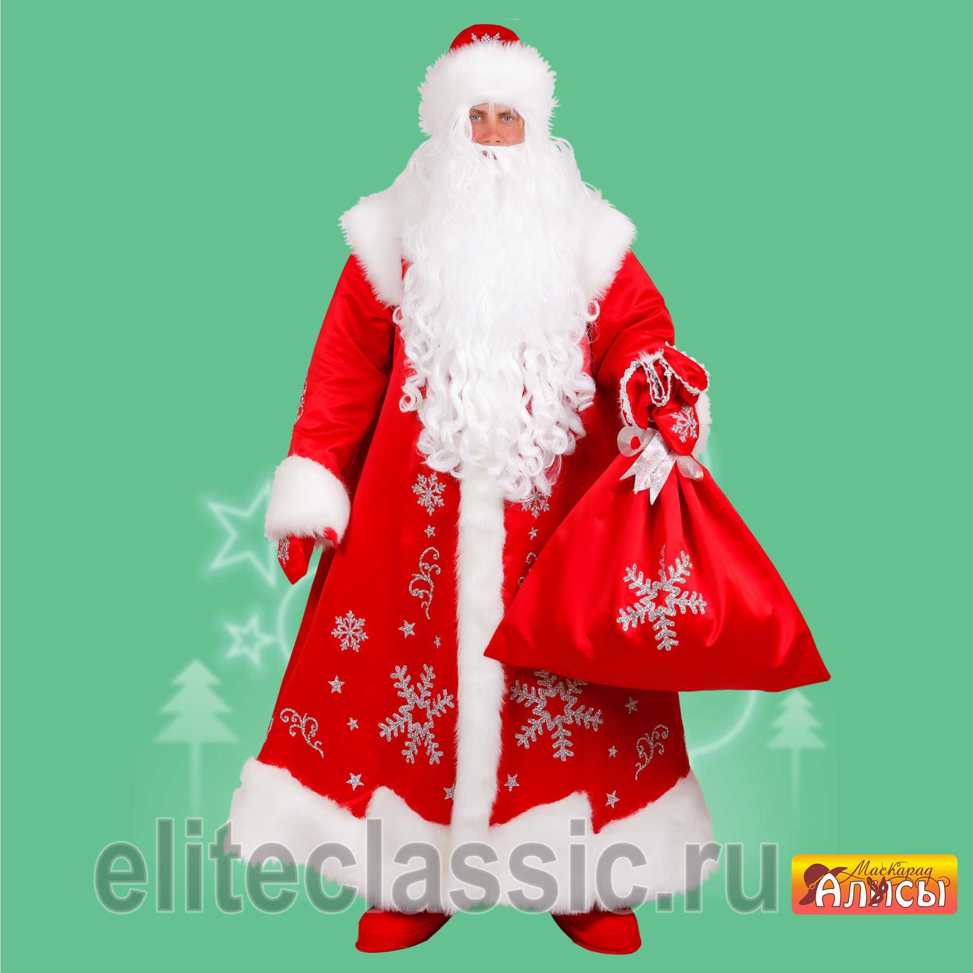 Праздничный мешок Деда Мороза для подарков детишкам на Новый год. Мешок из бархата приятного на ощуп, украшен большой блестящей снежинкой. Прекрасно дополняет костюмы Дед Мороза.
