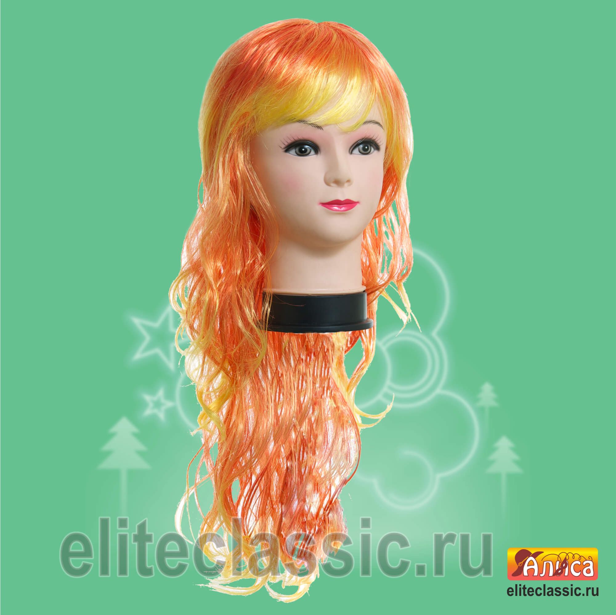 Длина волос: 58 см.Парик изготовлен из легких синтетических материалов, имеют надёжную основу (сеточку).